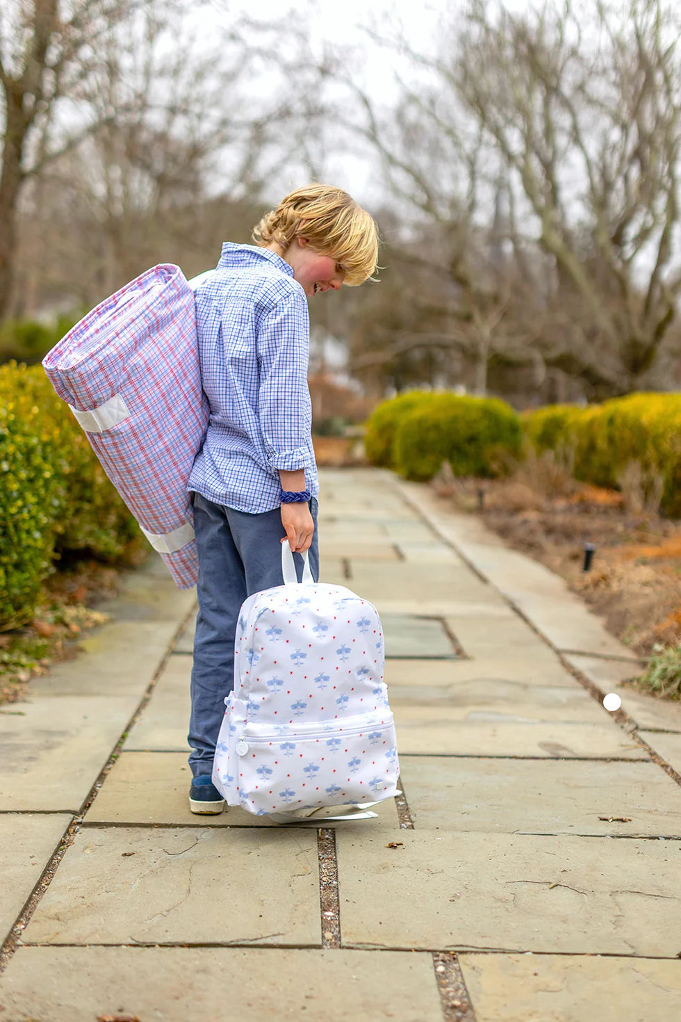Introducing Our Rest Up! NAP MAT, the perfect solution for a comfortable and clean nap time! Made with our signature coated print outer that provides a wipeable and antimicrobial exterior. Our FLIP & FOLD design is easy to open and close for all ages. The full inside zip around cover ensures dirt, germs, and little creatures to stay on the outside and not on the plush fleece inside where your little ones lay. Each mat has a comfortable wide web shoulder strap for easy transport to and from school and for travel!